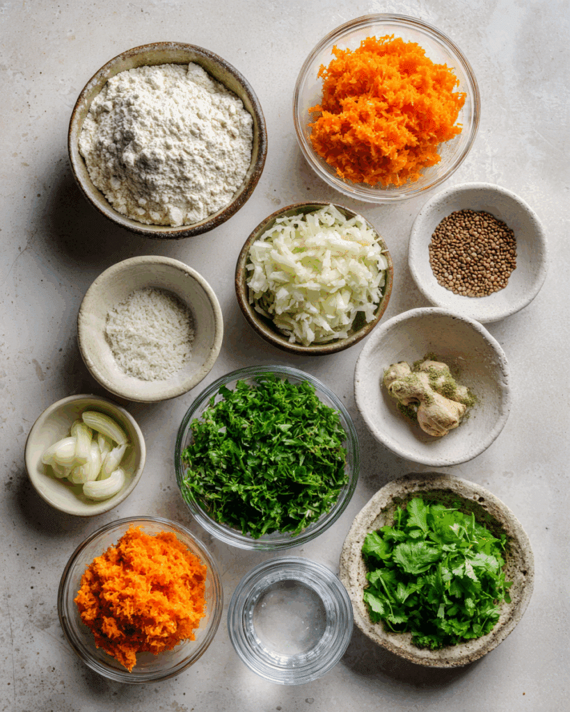 - Carrot (grated): 1 medium – Brings color and a natural earthy sweetness.
