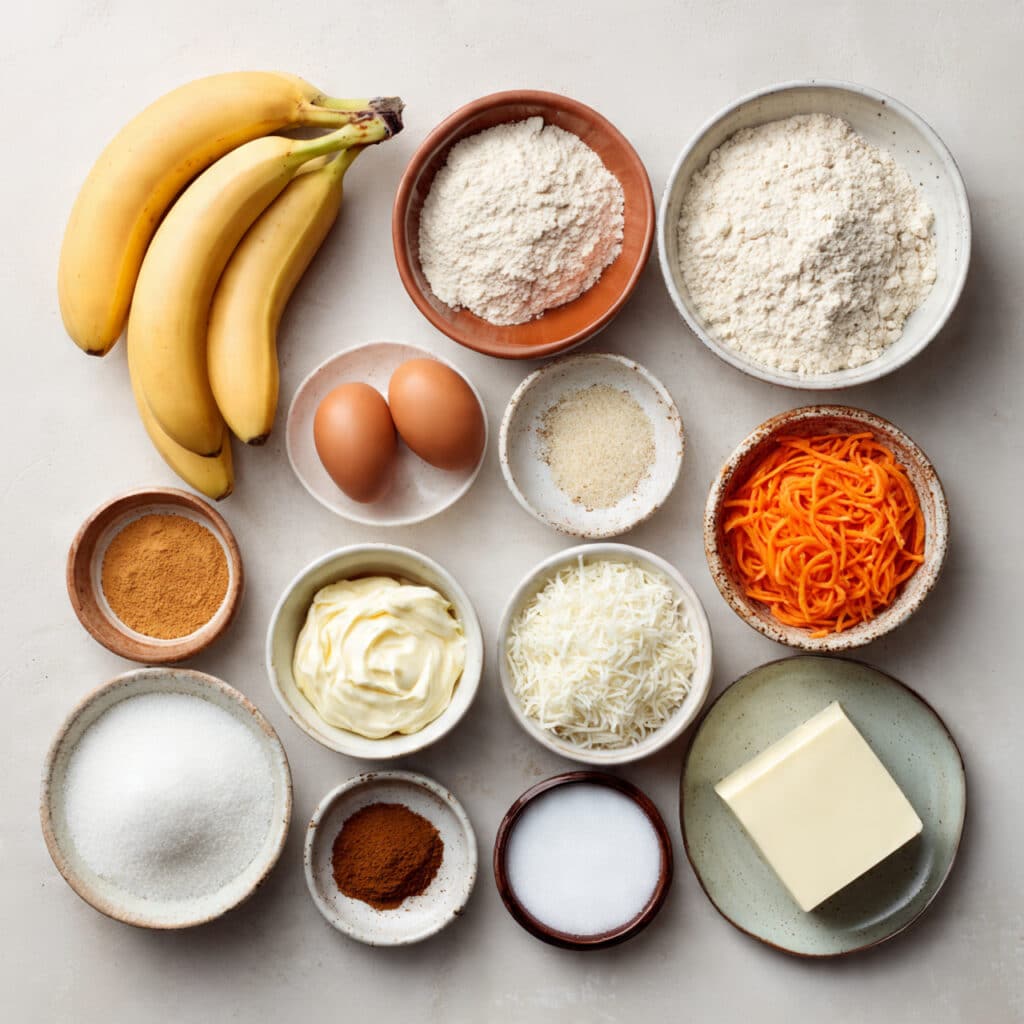 Ingredients in Banana Carrot Cupcakes with Coconut Cream Cheese Frosting