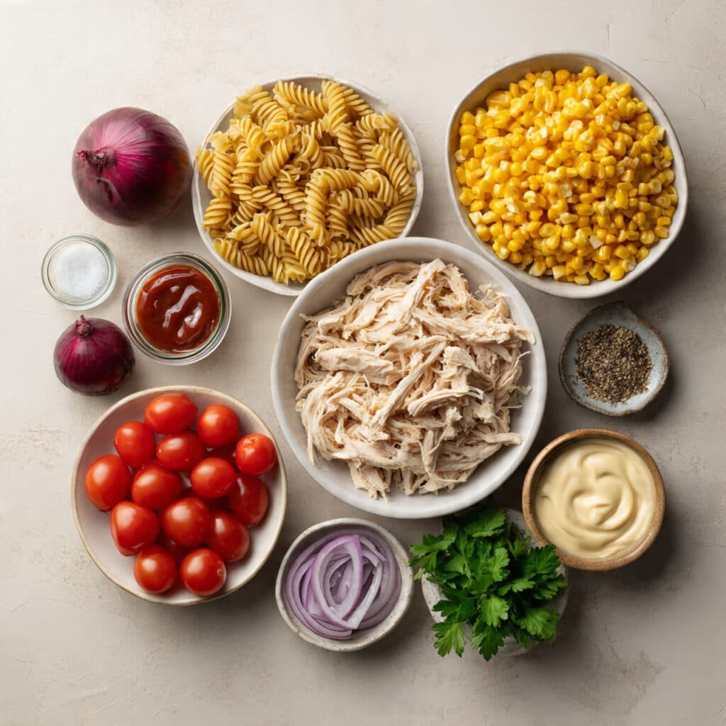This BBQ Chicken Pasta Salad is a smoky, creamy, and colorful dish filled with grilled chicken, rotini pasta, sweet corn, cherry tomatoes, and a tangy BBQ mayo dressing—perfect for picnics, potlucks, or easy meals.