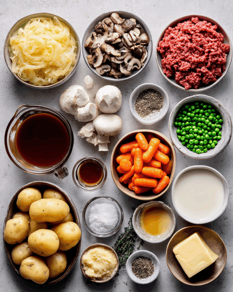 Ingredients in Beef and Mushroom Shepherd’s Pie