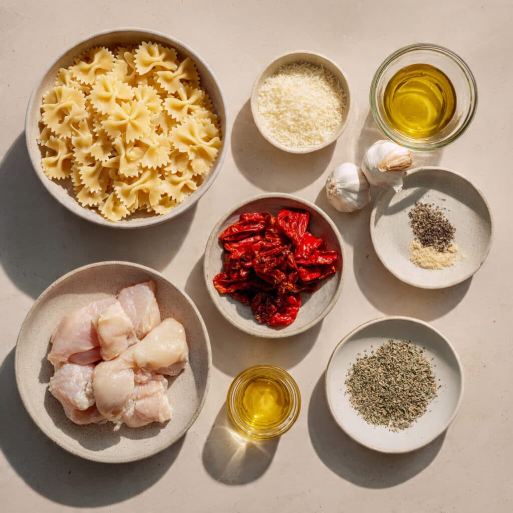 - Bowtie Pasta: 300 grams, holds sauce beautifully with its shape