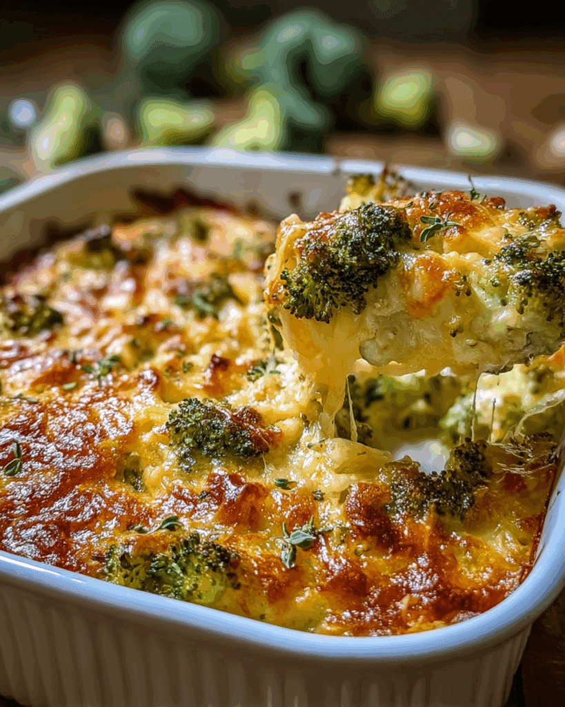 This casserole has always been a family favorite, especially during holidays and cozy weeknight dinners. It’s the dish that makes its way into potlucks, where someone always asks for the recipe after just one bite. I first learned it from my grandmother, who believed that broccoli deserved a crown of cheese to truly shine. Each time I make it, I’m reminded of her warm kitchen and the laughter that filled it.