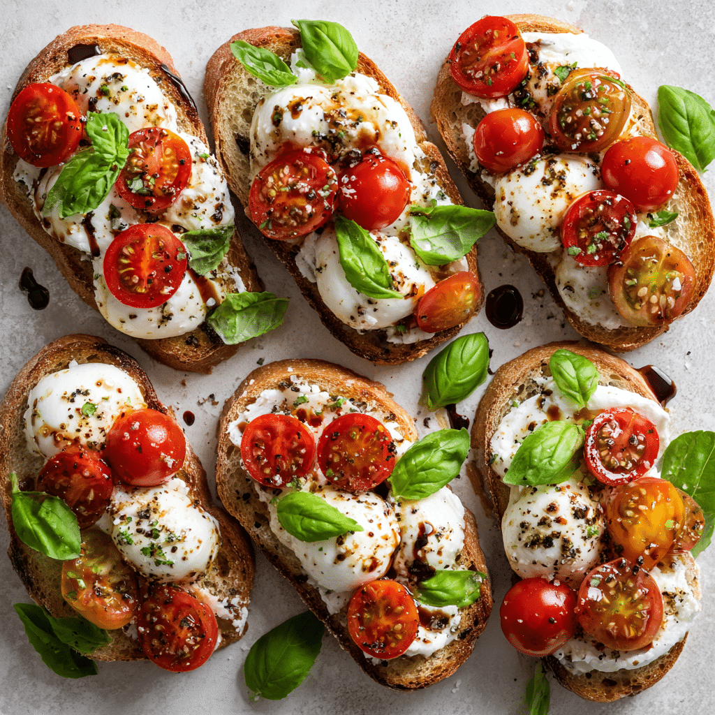 - Assemble the Dish: Layer basil, marinated tomatoes, and torn burrata on bread.