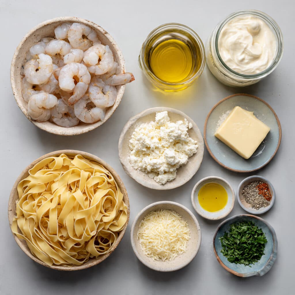 Presentation is everything. Swirl the pasta into neat nests on each plate, top with 2–3 shrimp, sprinkle fresh parsley, and add a few parmesan shavings. Serve in wide bowls for that elegant bistro vibe.