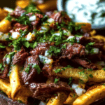 Carne Asada Fries are the kind of comfort food that bridges street food charm with homemade heart. I remember the first time I had them after a late-night walk through San Diego, where food trucks line the streets, serving up heaping plates of fries drenched in savory steak. It felt like a celebration — casual, hearty, and absolutely irresistible. Bringing that memory into the kitchen is what inspired this recipe.