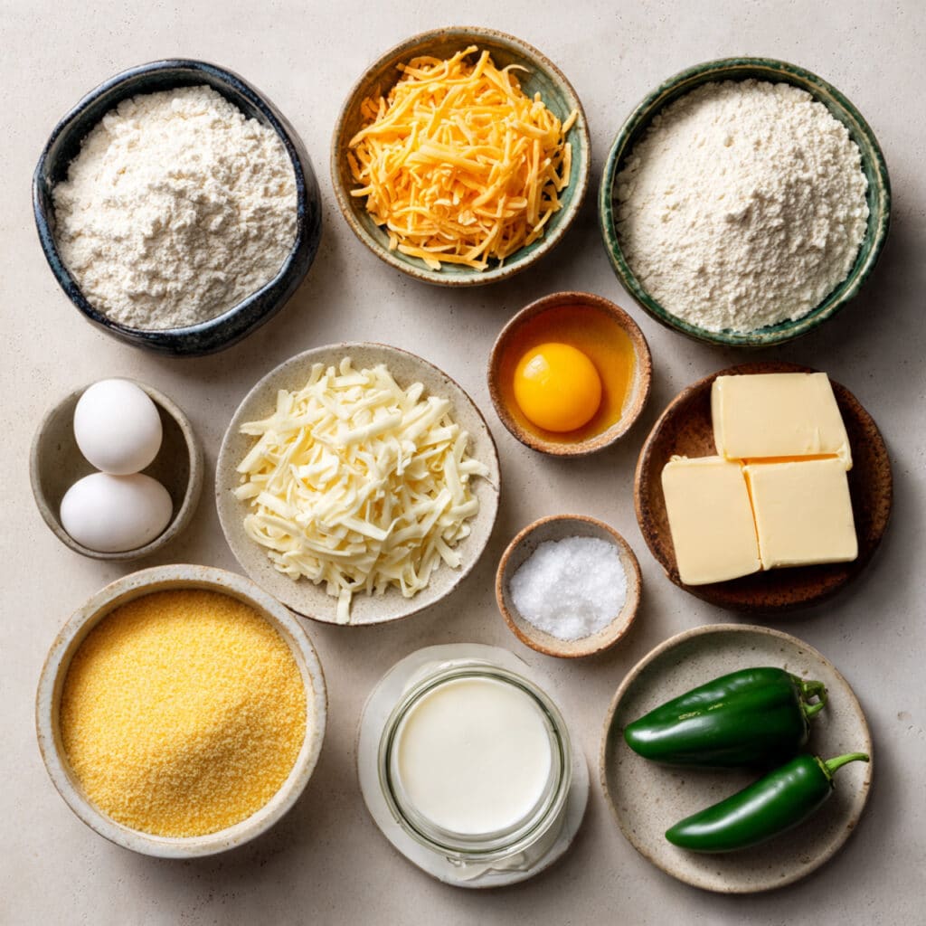 Ingredients in Cheddar Jalapeño Cornbread Waffles