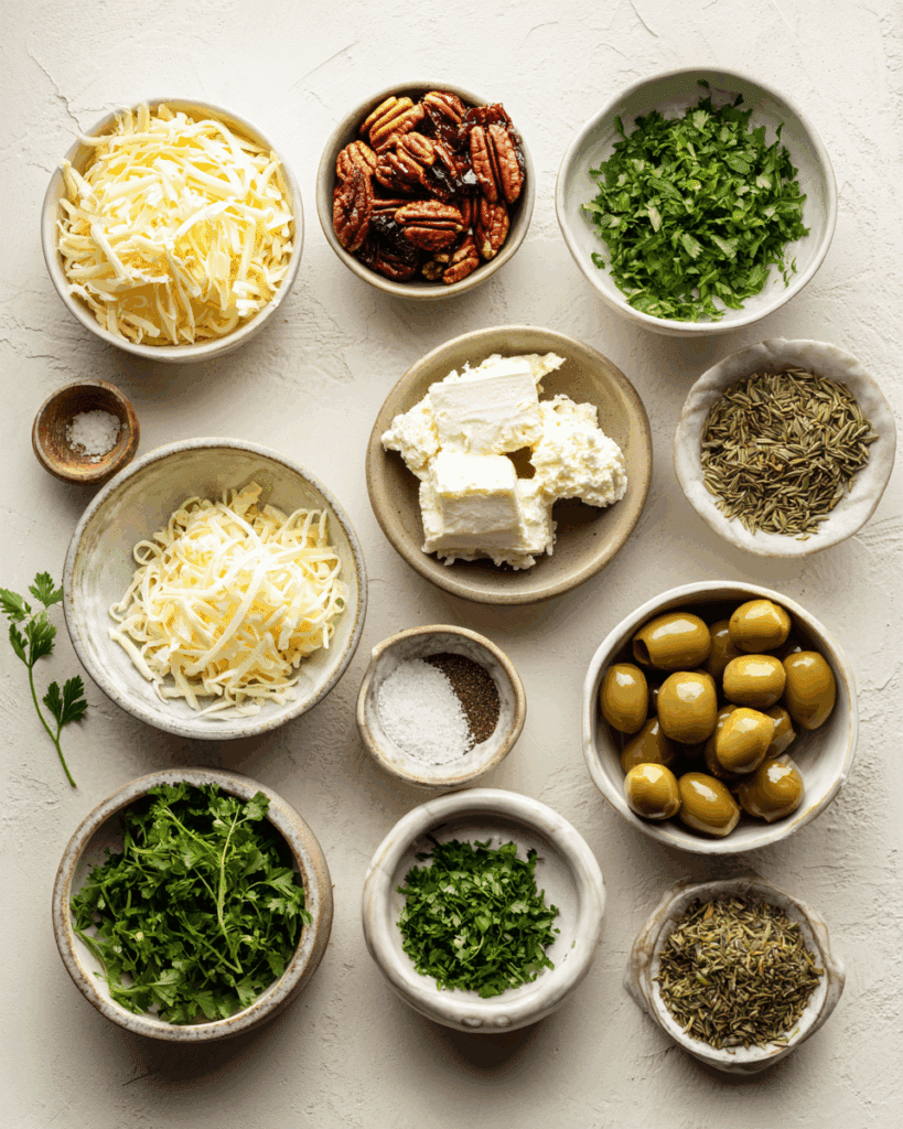 A creamy, savory cheese log packed with herbs, sun-dried tomatoes, green olives, and crunchy pecans. Perfect for parties, gatherings, or anytime snacking, this no-bake appetizer comes together in minutes and tastes even better the next day.