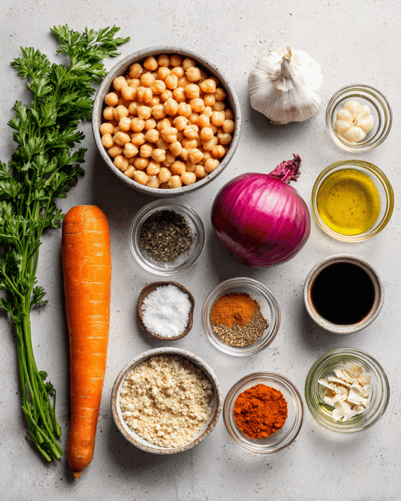 Carrots: Not just for color, carrots bring a natural sweetness and moisture that balance out the density of the chickpeas.