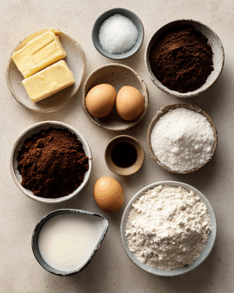 Unsweetened Cocoa Powder: This is what gives the cake its bold, deep chocolate identity. The unsweetened kind ensures you’re in control of the sweetness.