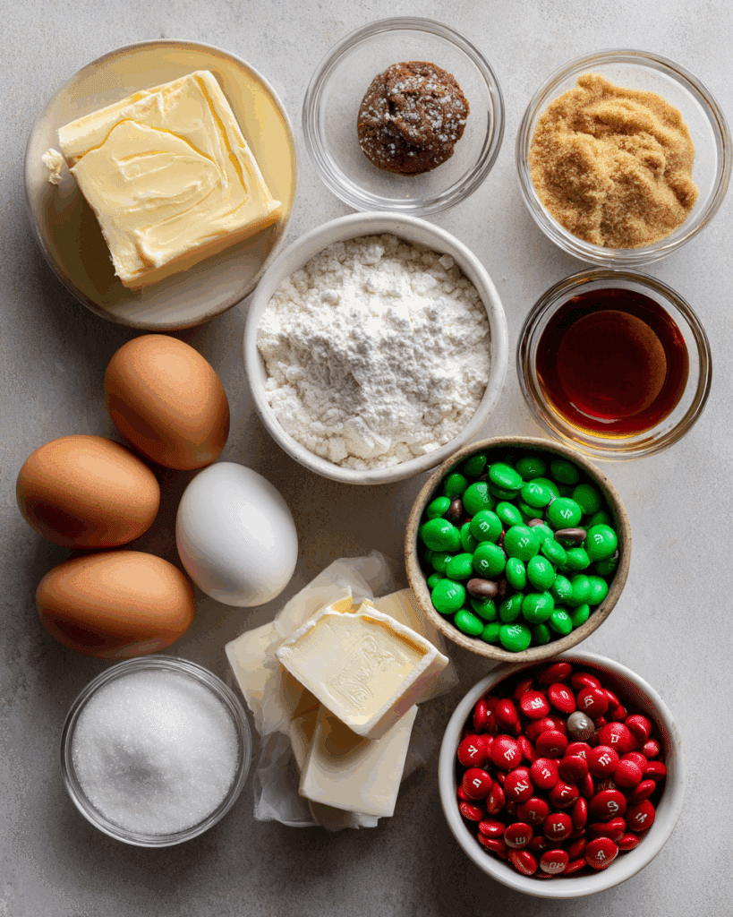 Ingredients in Christmas M&M Chocolate Chip Cookies