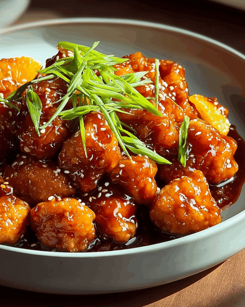 Presentation is everything! Pile the chicken high on a white platter, drizzle extra sauce over the top, and scatter sesame seeds and green onion slices for that restaurant-style finish. Add a few orange zest curls or edible flowers to really impress.