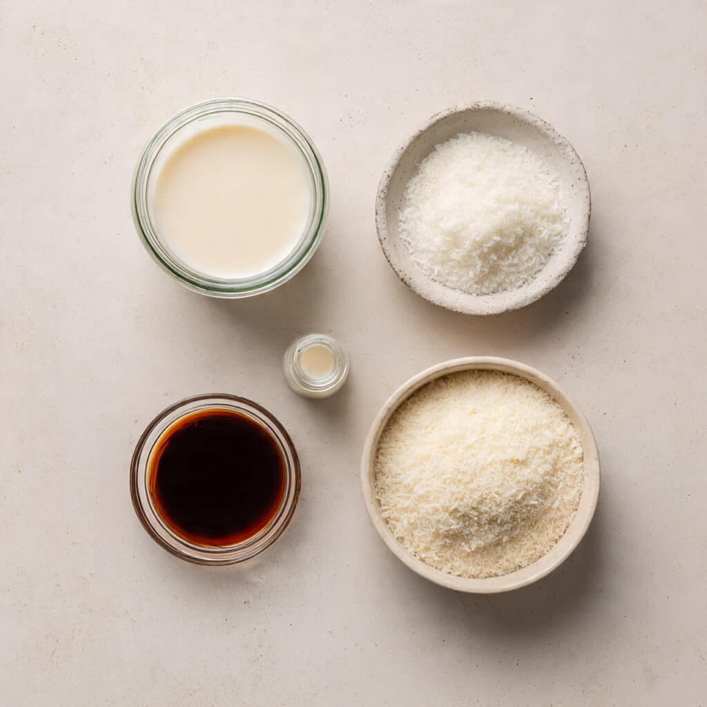 - Desiccated Coconut: 3 cups – Gives texture, body, and that signature coconut flavor.