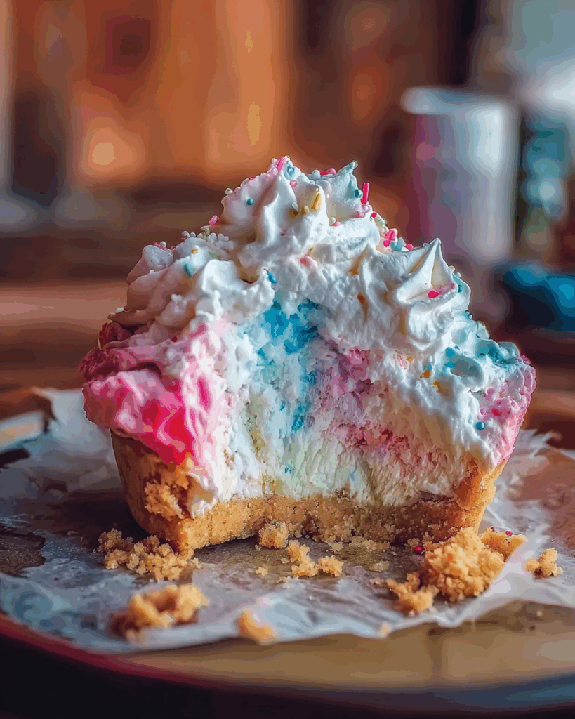 Serve with a cloud of cotton candy perched on top for drama. Pair with sparkling water, fruity mocktails, or a simple cup of coffee to balance the sweetness. Add pastel sprinkles for extra fun at parties.