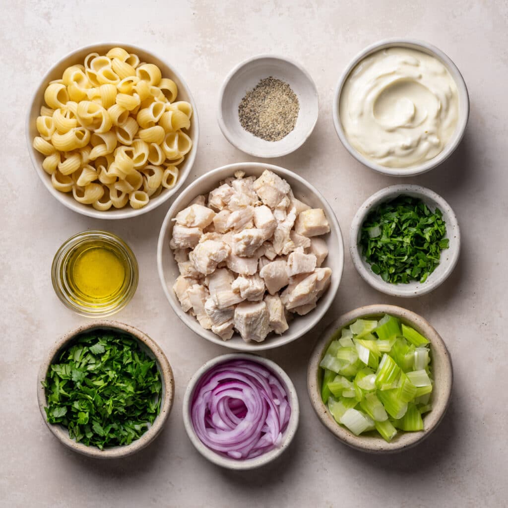 This salad is all about contrast. The pasta is soft but structured, the chicken tender yet firm, the celery crisp, and the dressing creamy and tangy with a hint of garlic warmth. The flavors build the longer it sits, giving you a cool, rich, and refreshing bite every time.