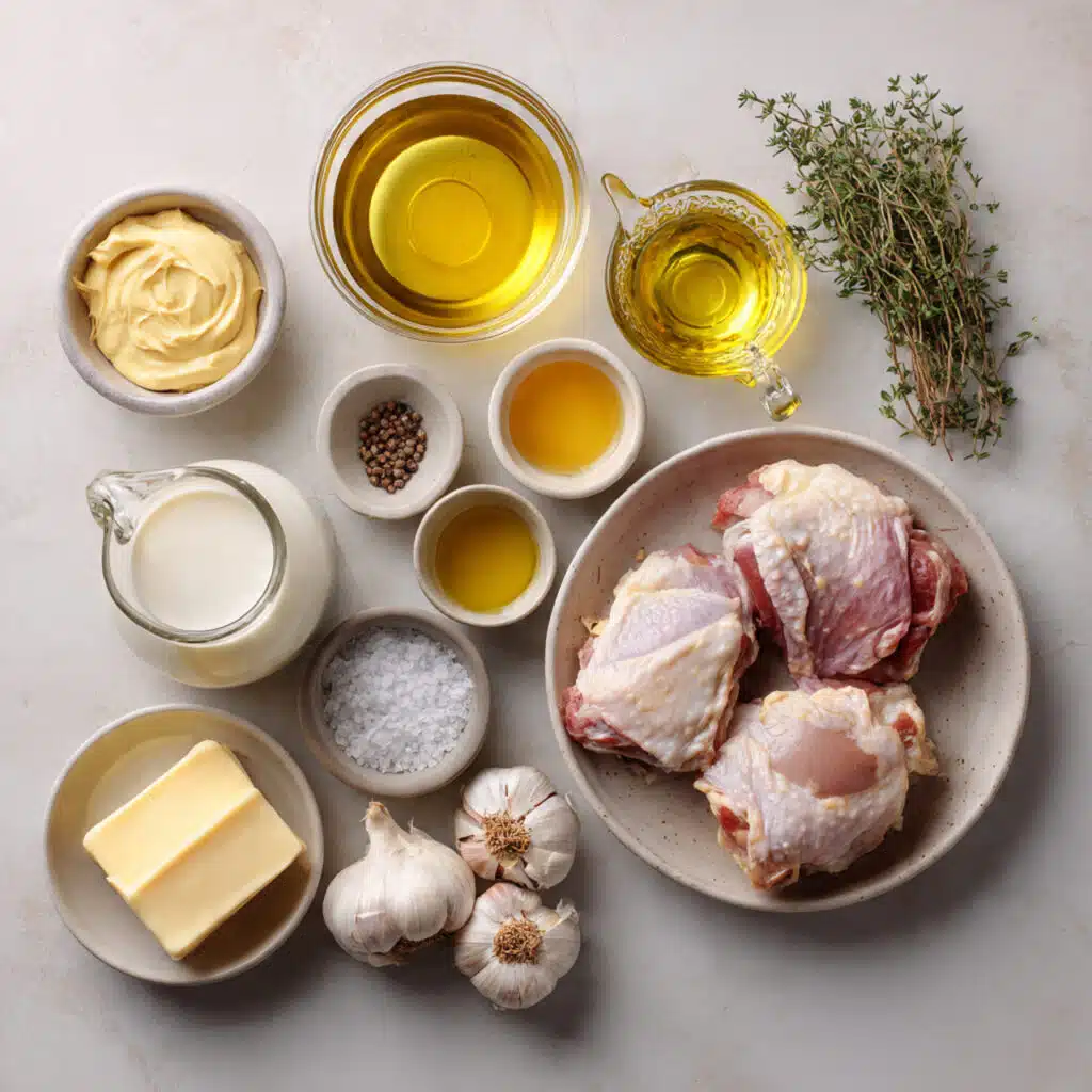 Tender chicken thighs simmered in a rich and creamy Dijon mustard sauce with garlic and herbs, creating a comforting and flavorful dish perfect for any occasion.