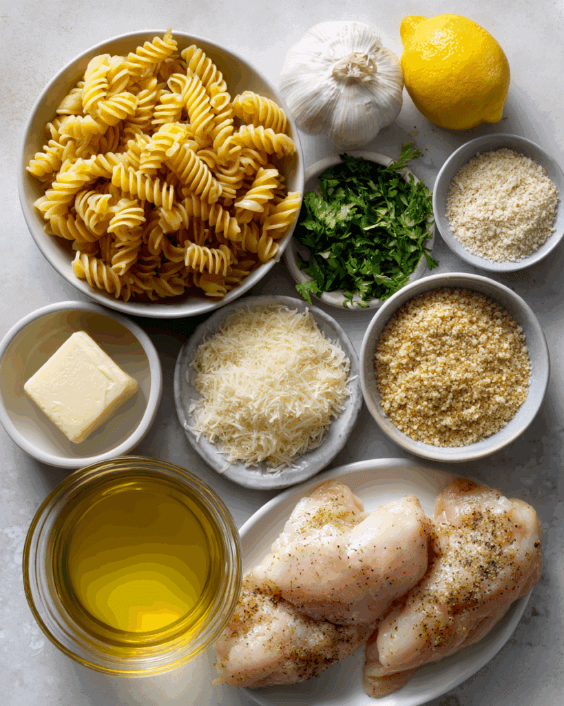 Ingredients in Creamy Lemon Garlic Pasta with Parmesan Crusted Chicken
