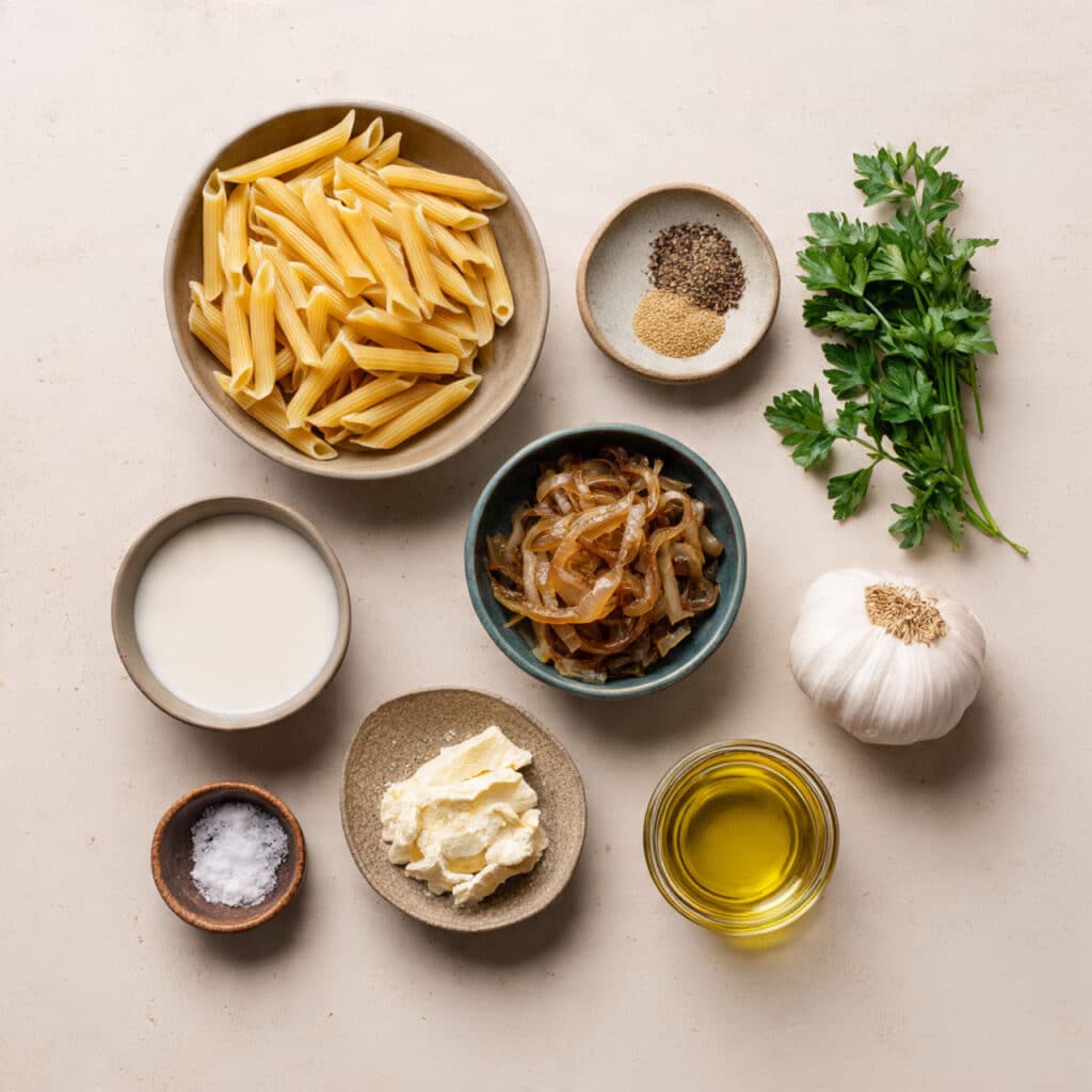 A rich and comforting vegan pasta dish featuring deeply caramelized onions in a silky, creamy sauce that coats every strand beautifully.