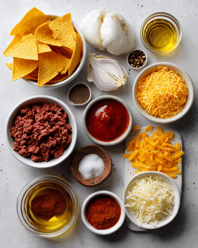- Shredded Cheddar Cheese: 1 cup – Melts beautifully into the beef, adding creamy richness.