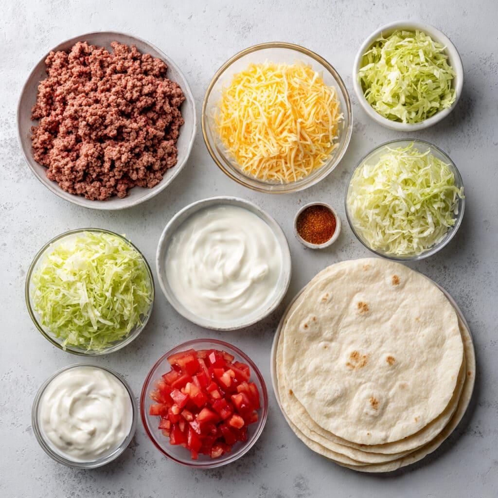 Ground Beef: When seasoned properly, it becomes juicy, flavorful, and the heart of the wrap.