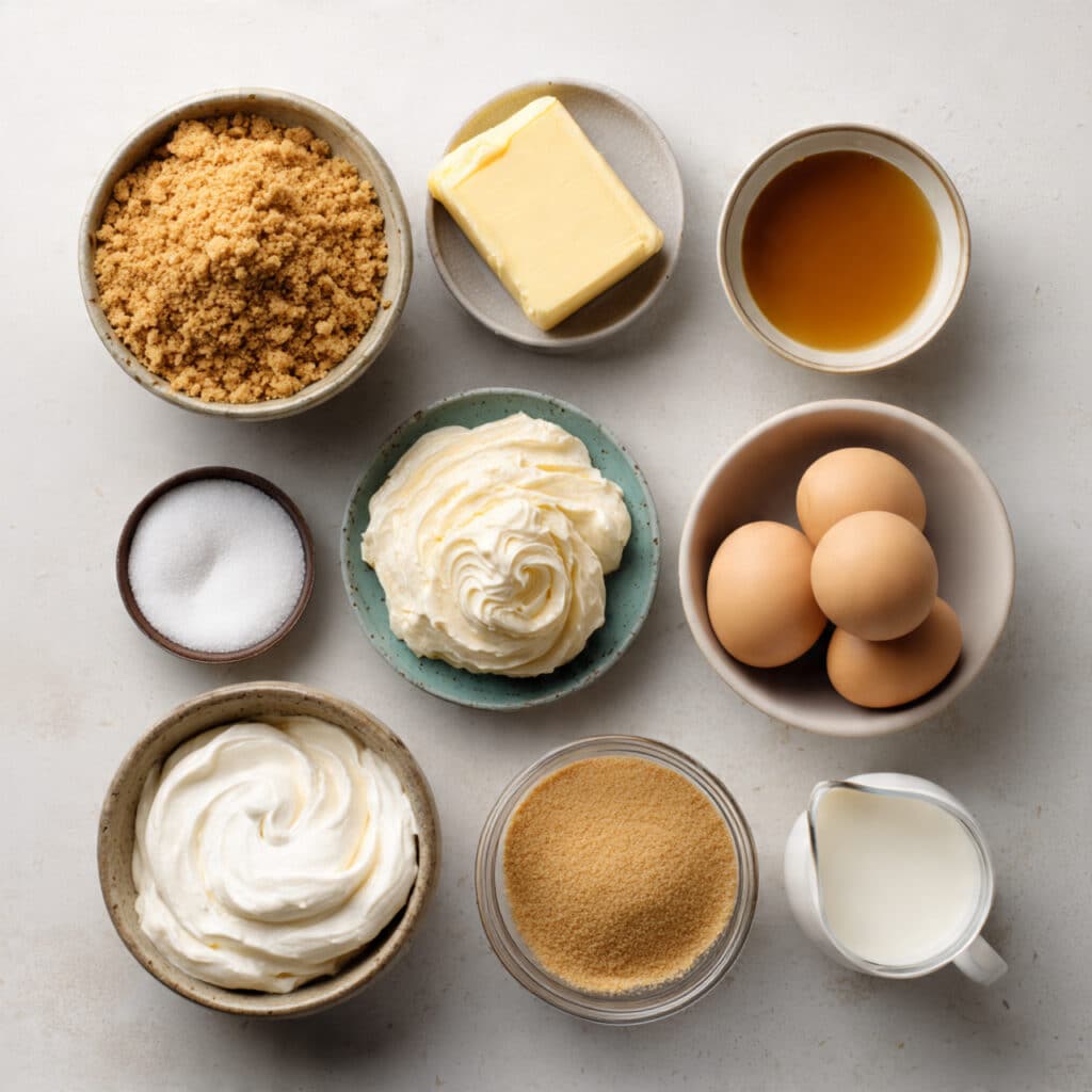 - Graham Cracker Crumbs: 1 ½ cups, forms the buttery base
