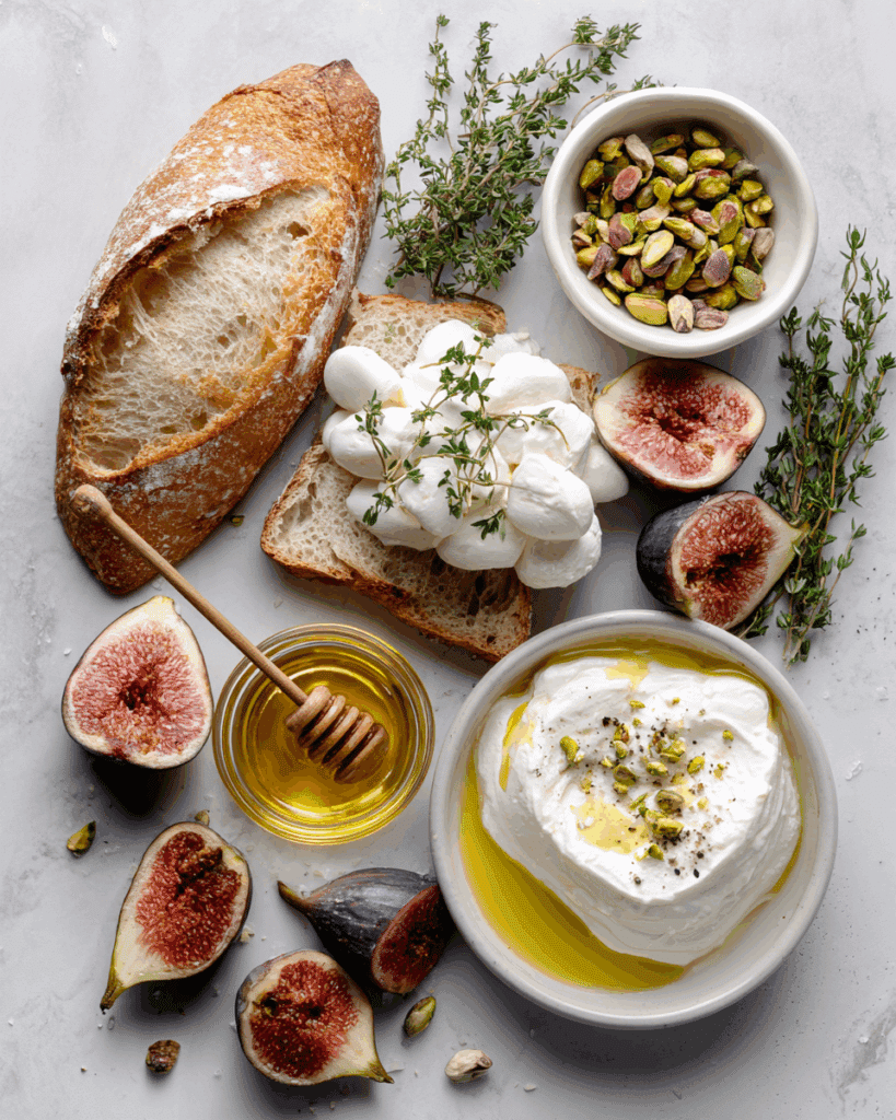 What makes this dish shine is the contrast. The bread gives you that golden crunch, the burrata oozes creamy richness, and the figs burst with sweet juiciness. Then you’ve got honey’s silky gloss and pistachios’ nutty crackle. It’s a mouthful of harmony in every bite.