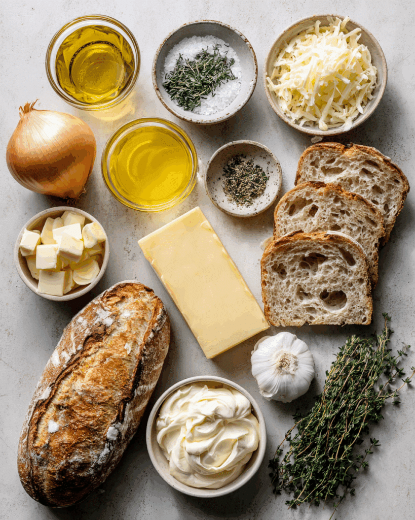 - Butter: 2 tablespoons – For sautéing onions and crisping the bread.