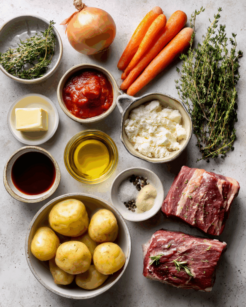 - All-Purpose Flour: ¼ cup. Light coating on beef for browning and thickening.