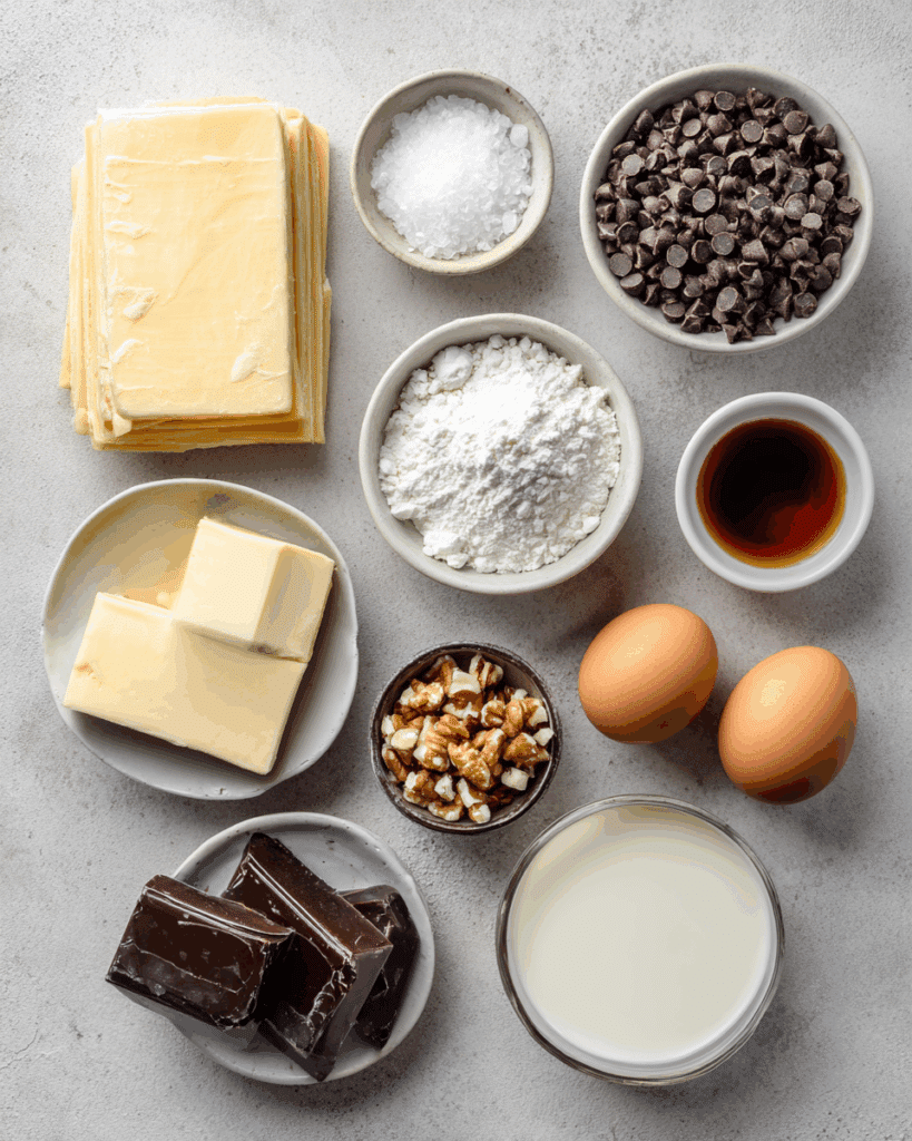 - Semi-Sweet Chocolate Chips: 1 cup. Melted to create the rich, fudge-like filling.