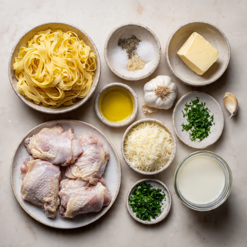 - Fettuccine Pasta: 12 oz – Holds the creamy sauce beautifully with its flat, wide shape.