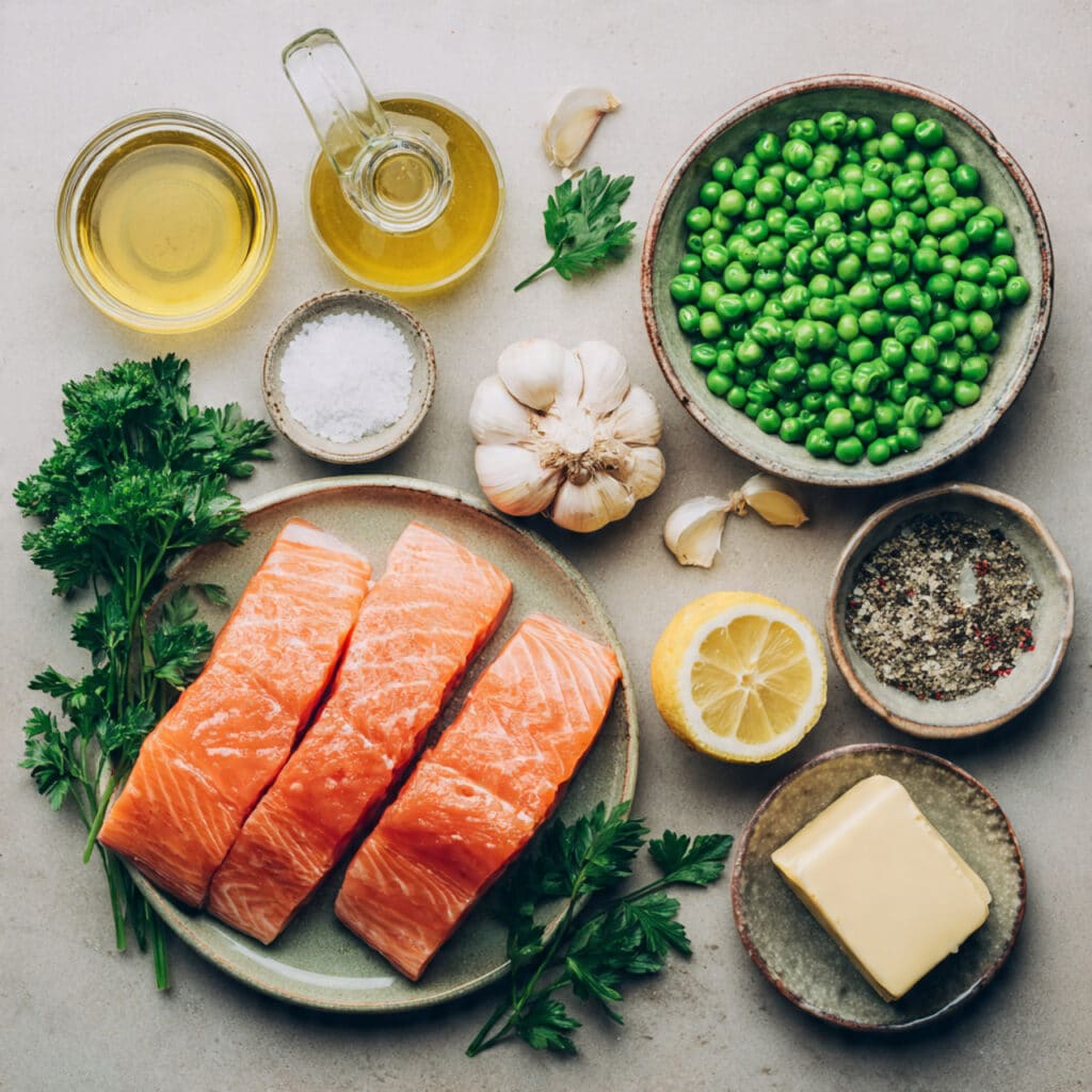 Golden, garlicky salmon fillets paired with sweet green peas and a lemony butter sauce. A quick and elegant dinner that comes together in under 30 minutes.
