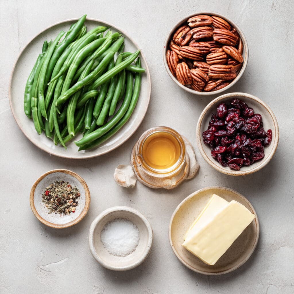 Ingredients in Green Beans with Honey Pecan Butter and Cranberries