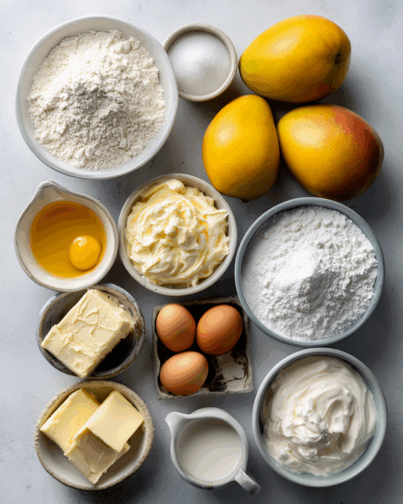 - Finishing Touches: Optional — dust lightly with powdered sugar or top with extra mango slices for presentation.