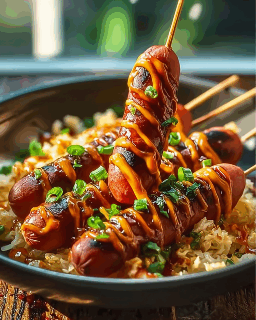 Nothing says casual fun like a skewer of smoky, juicy hot dogs brushed with a fiery-sweet glaze. Imagine the savory aroma of sizzling franks as they char slightly over heat, balanced by a sticky coat of Sriracha, honey, and garlic that caramelizes to perfection. These skewers bring together comfort food nostalgia with a playful twist, making them perfect for cookouts, parties, or even a weeknight dinner that needs a little spark.