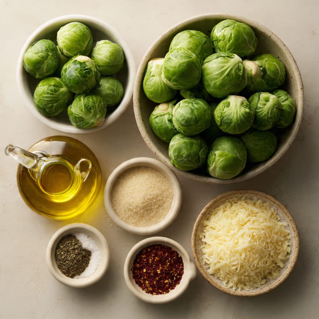 Parmesan Cheese: Adds that umami punch and a salty finish that balances the bitterness of the sprouts.