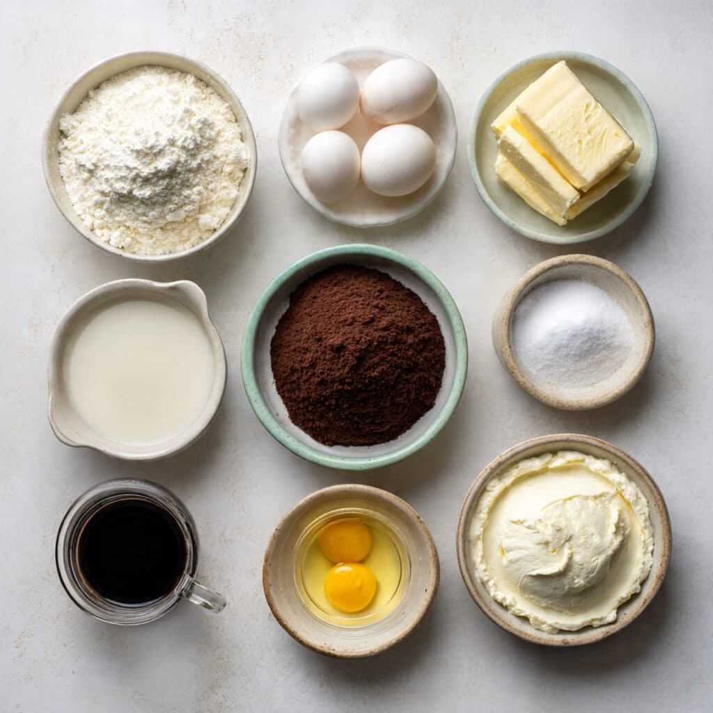 - Sugar: 1 cup + Sweetens the ricotta layer to balance the chocolate.