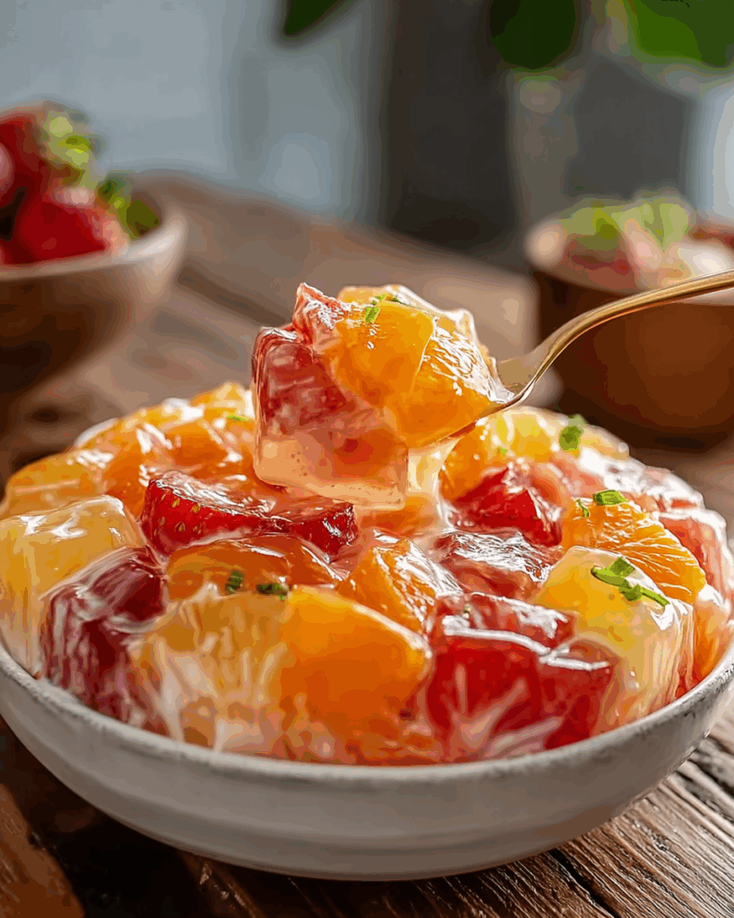 The magic of Jello Salad lies in contrasts: the silky wobble of gelatin against juicy bursts of fruit, the pillowy softness of marshmallows, and the nutty crunch of pecans. The flavors deepen as it chills, with sweet fruit mingling into the tangy gelatin for a balanced, refreshing finish.