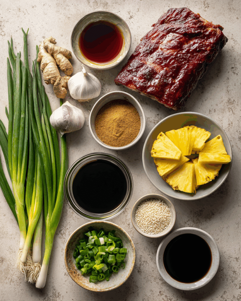 Ingredients in Korean-glazed baby back ribs with charred pineapple