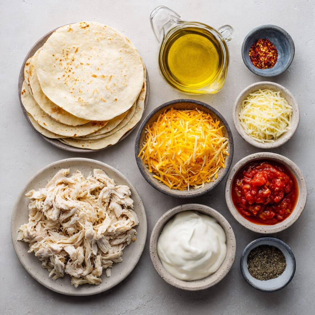 Now let’s talk about the simple lineup that makes these Lazy Chicken Quesadillas shine. Each ingredient plays its part in building that irresistible flavor and texture.