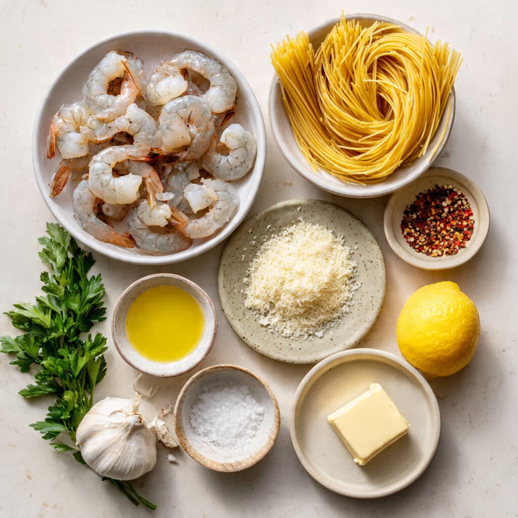 Ingredients in Lemon Butter Garlic Shrimp Pasta
