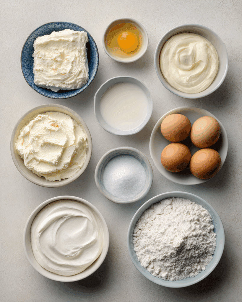 This cheesecake’s magic lies in its minimalism. Each ingredient plays a key role in creating its dreamy texture and bold flavor.