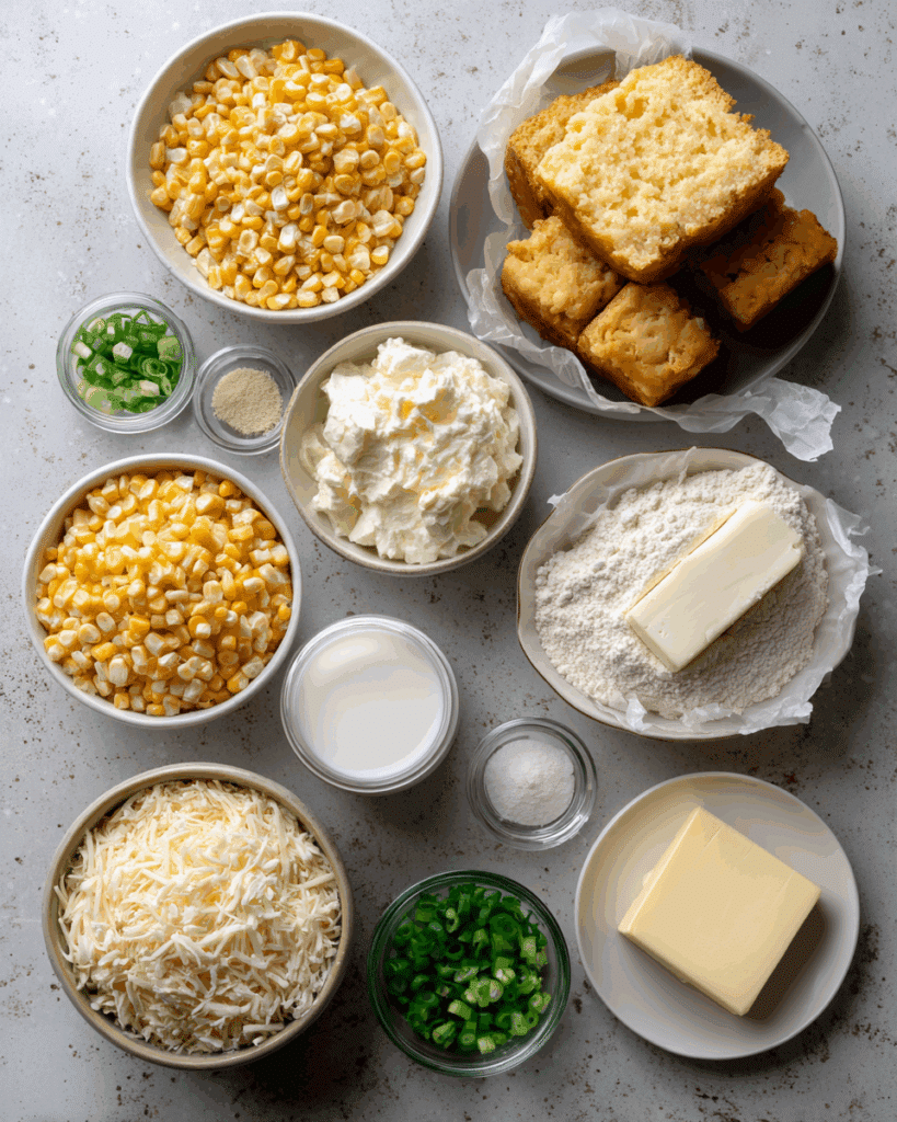 - Cream-Style Corn: 1 cup. Adds moisture and that signature pudding-like texture.