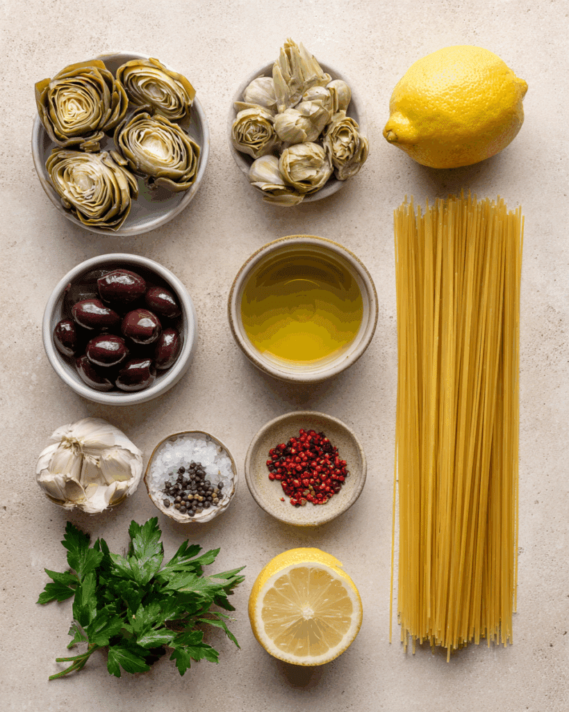 The inspiration for this recipe came from a tiny family-run trattoria I stumbled upon in the south of Italy. They served a simple pasta that danced with flavor—garlic, lemon, olives, and artichokes all mingling beautifully. I knew right then I had to recreate it at home. This dish is my tribute to that unforgettable lunch, a nod to the honest, vibrant flavors of the Mediterranean. It’s the kind of recipe you’ll turn to again and again when you want something delicious and soul-satisfying without much fuss.