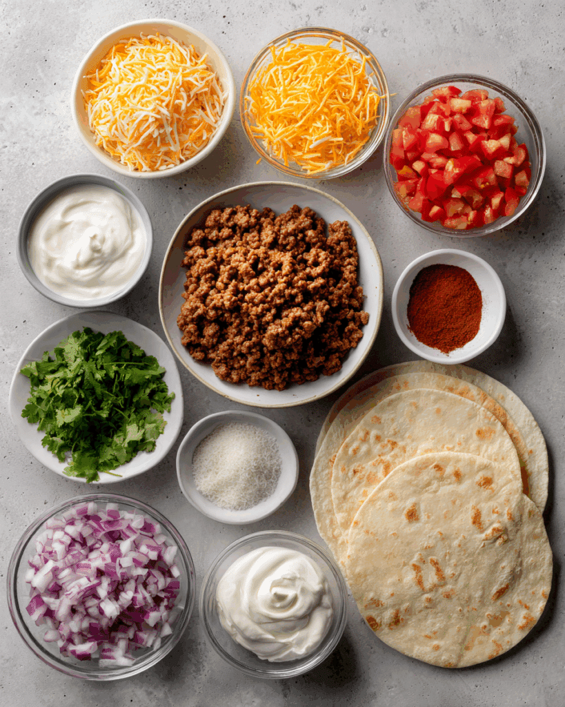 The secret lies in the contrasts. Crispy tortilla shells cradle the juicy, spiced beef while gooey cheddar melts into every crevice. The sour cream adds cool creaminess that tempers the heat, and fresh cilantro brings a bright pop. Together, it’s a texture party you won’t want to end.