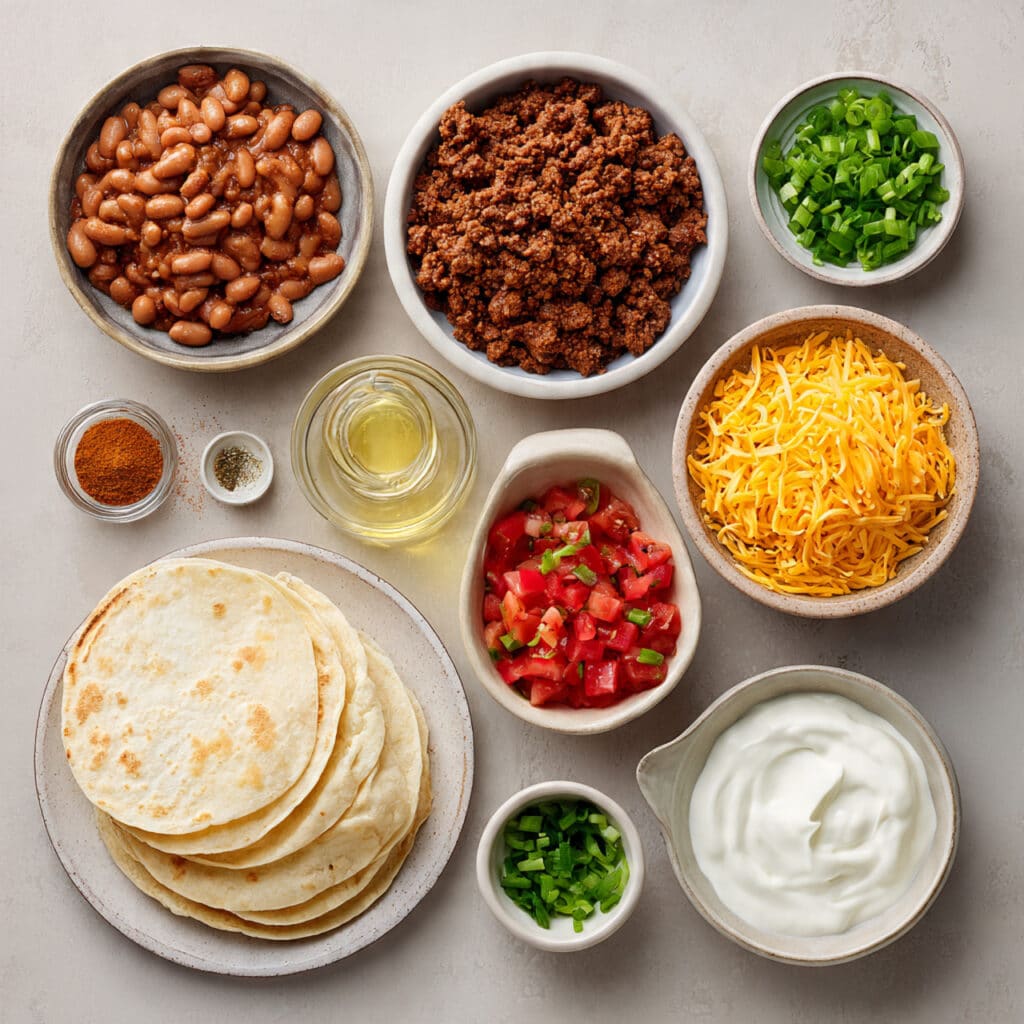 - Refried Beans: 1 cup — Creamy, flavorful, and the glue that holds it all together.