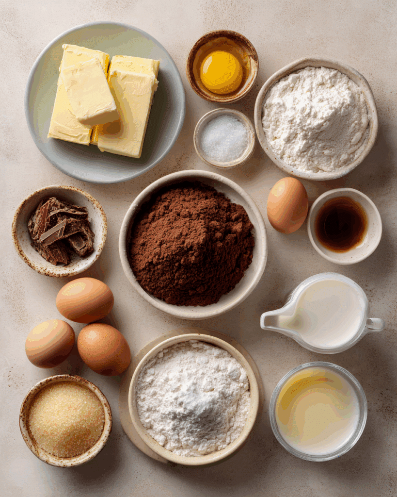 - Unsweetened Cocoa Powder: ½ cup. For rich, deep chocolate flavor.