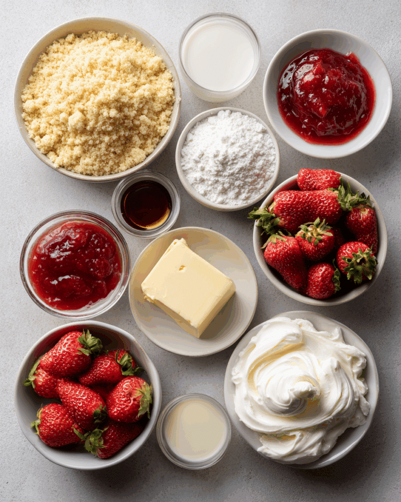 - Strawberry Jam or Sauce: 1/2 cup. Adds a glossy, concentrated strawberry layer on top.