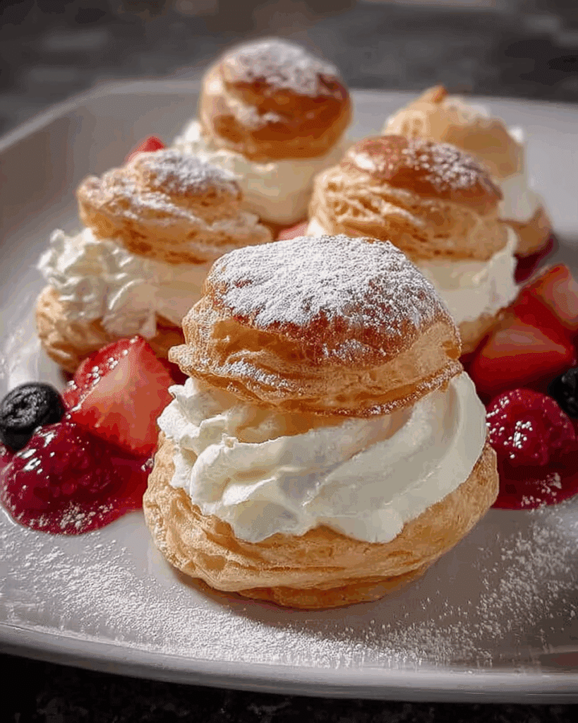 Keywords: cream puffs, choux pastry, homemade dessert, whipped cream puffs, easy pastries