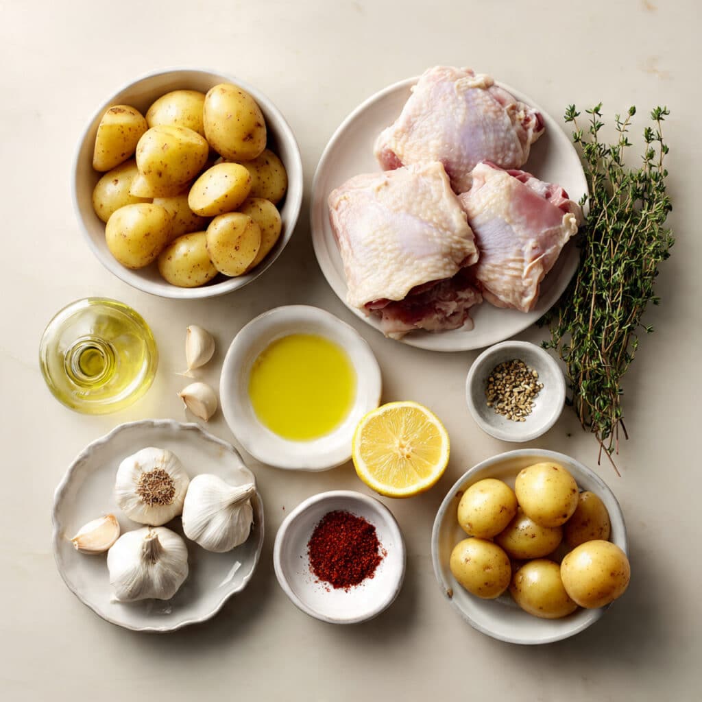 This one pan chicken and potatoes recipe brings together crispy baby potatoes, juicy roasted chicken thighs, and aromatic herbs in one easy, flavorful meal that’s perfect for busy weeknights.