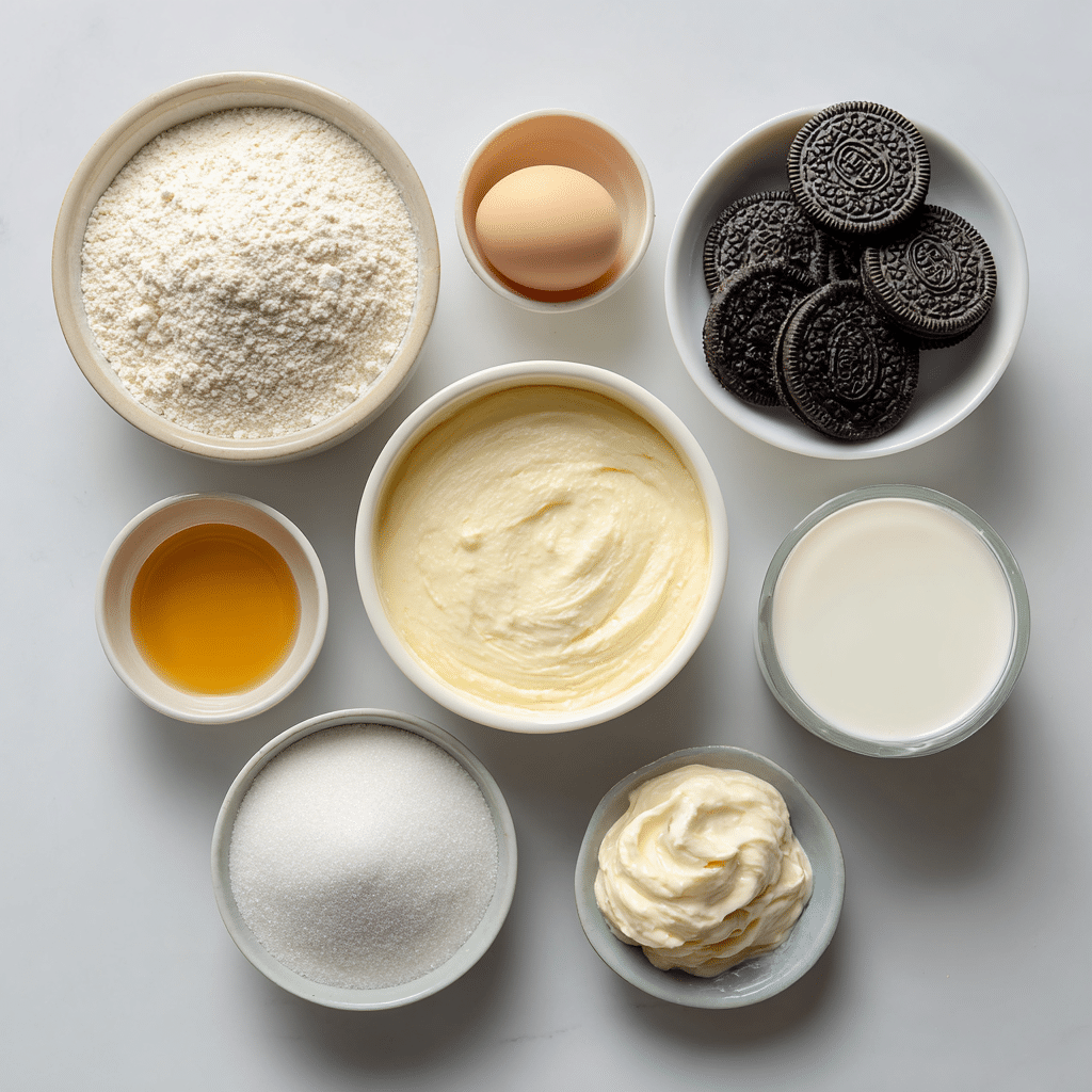- Crushed Oreos: 12 cookies (For layers and garnish.)