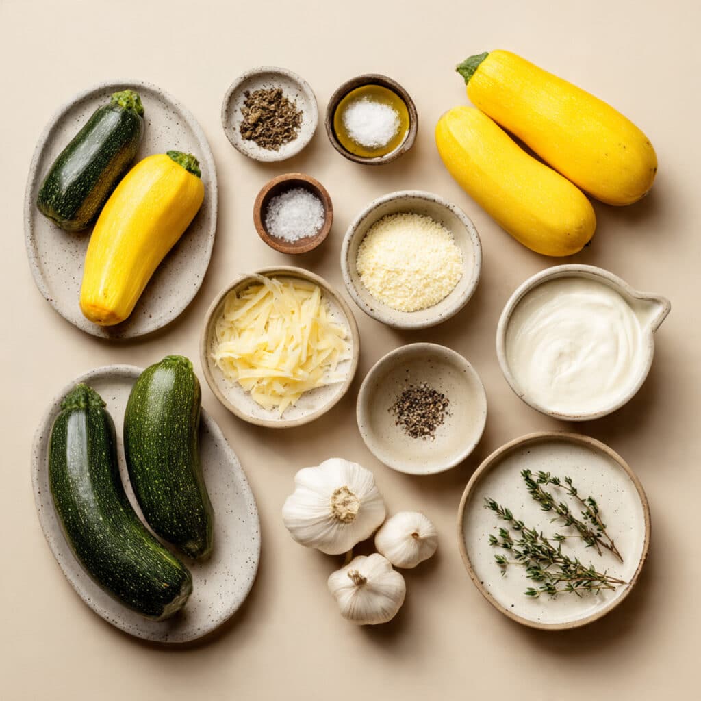 - Assemble the Dish: Layer the squash and zucchini slices, pouring some cream mixture and sprinkling cheese between layers, repeat until everything is used.